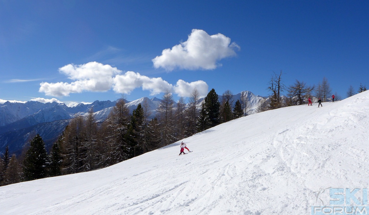 Prima parte, molto soleggiata, facile e panoramica della pista Doss dei Gembri.