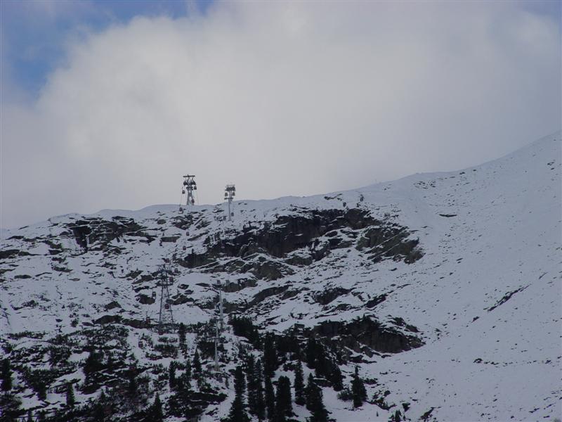 Prendiamo la telecabina che ci porta verso i 3000 ed il panorama già attorno a 1800-2000 metri è invernale (ed anche la temperatura è degna di gennaio):