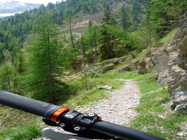 Si parte dal paese con direzione Val San Nicolò. Si giunge alla Baita alle Cascate (1826 mt) da dove si smette di pedalare e si inizia a spingere la bici. In circa 40 minuti di “camminata” si arriva quindi al Passo San Nicolò posto a 2340 mt dove ci sta tutta una bella pausa all’omonimo rifugio prima della discesa. Attenzione che gli ultimi 200mt di salita sono abbastanza ripidi.