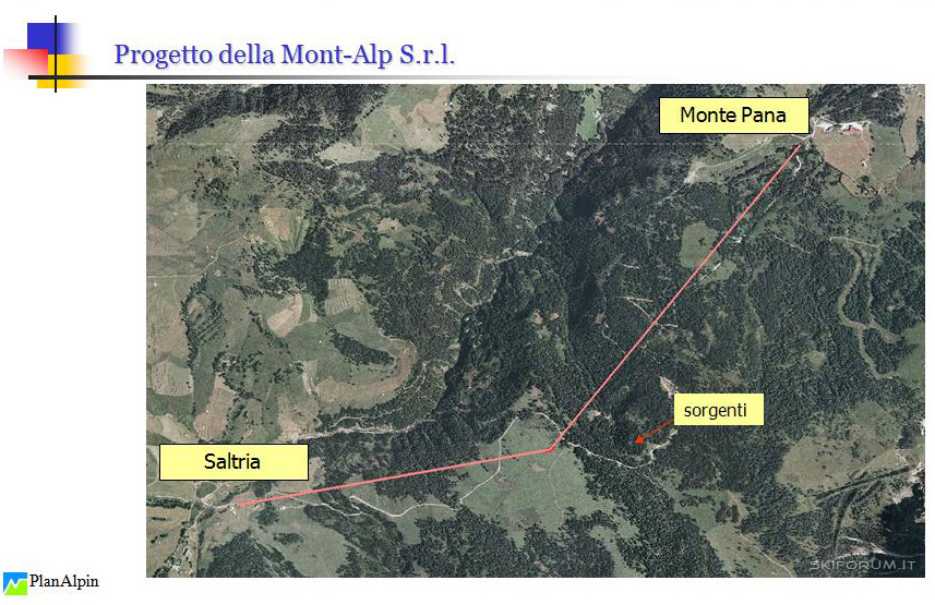 Una delle possibili soluzione è quella di fare un impianto di collegamento che collega Saltria alla zona del Monte Pana. In pochi minuti di cabinovia le due località sarebbero effettivamente collegate e non si dovrebbero più aspettare i furgoncini, pagare il pedaggio, non si dovrebbero più aspettare gli orari di partenza ed arrivo e il collegamento funzionerebbe da inizio a fine stagione ogni giorno.