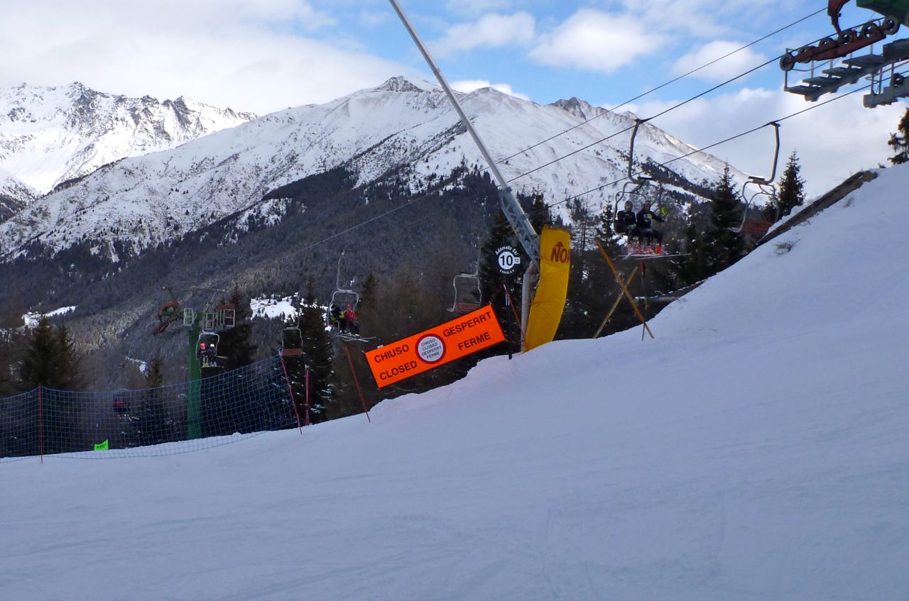 Arrivato con il pullman verso le 9.00 sotto la seggiovia Scoiattolo (era la gita anche della scuola di sci) mi ricordo i vostri consigli e cerco di capire come andare sulla seggiovia Bleis. Prendo la Serodine e vado in cima e noto che la pista verso la Bleis praticamente non c'e', ma vedo della gente fare del fuoripista per attraversare e quindi li seguo... per un po' tutto bene, ma raggiungendo un pezzo particolarmente esposto al vento: scrac! scrac! grat! Maledizione... i miei poveri sci... finisco la discesa verso la Bleis imprecando e cerco di non pensarci.