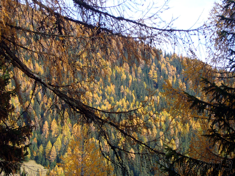 Entrati nel bosco si raggiunge in breve il forte Mero, a quota 1841: Flash Earth. L'opera, insieme ad altre 4 (Zaccarana, Strino, Velon, Pozzi Alti) costituiva l'immane sbarramento del Tonale dal lato austriaco durante la Prima Guerra Mondiale. Dal lato italiano un solo forte, quello del Corno d'Aola.