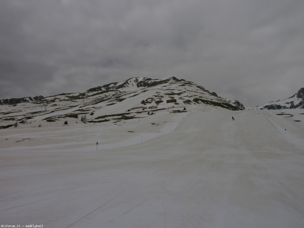 La situazione si fa veramente pesante ora dopo le 13, neve marcissima l'umidità penetra all'interno la neve che rimane sopra è soffice ma aggressiva ti prende lo sci, ti rallenta, ti fa sudare, ti sbilancia all'improvviso, è proprio il limite anche per il sottoscritto!