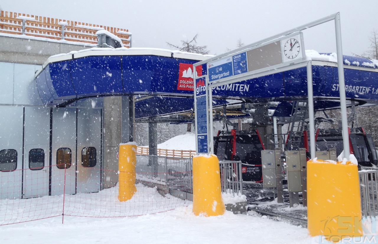 Stazione di valle della cabinovia di collegamento tra Monte Elmo e Croda Rossa.