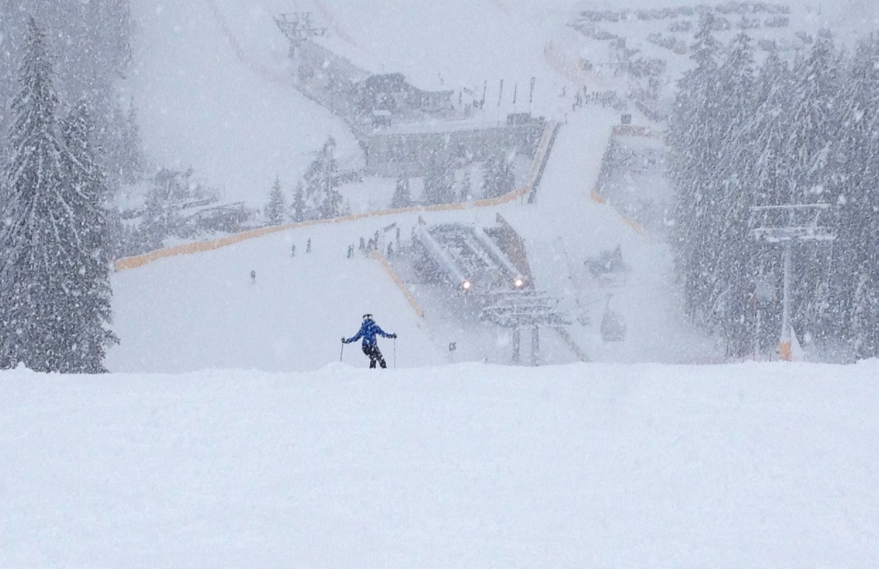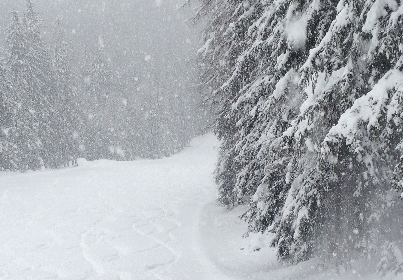 Finalmente si ritorna a sciare sotto una vera nevicata (almeno sopra i 1500 m circa).