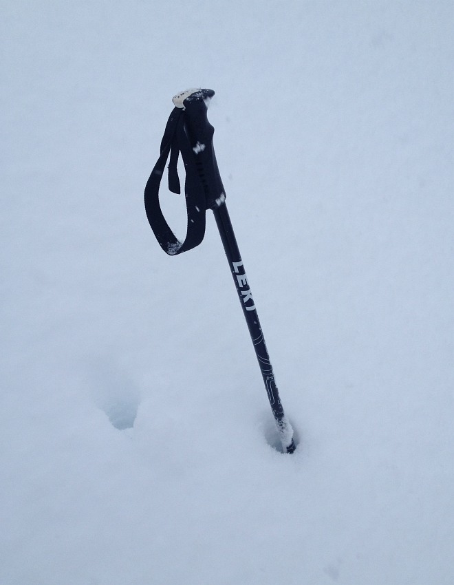 Il muro basso della Holzreise era chiuso, c'era il segnale con il filo tirato... ma non è stato possibile non sciarla. In alto neve bella ma in fondo, dove spianva, polenta.