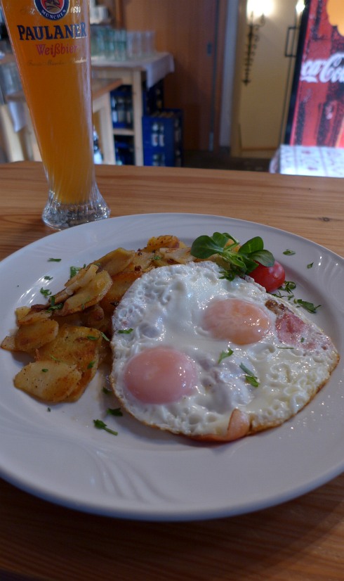 Sosta veloce al Raut Hutte, Uova Speck Patata molto buono (ma perdono la gara con quelle del rifugio Santa Croce)