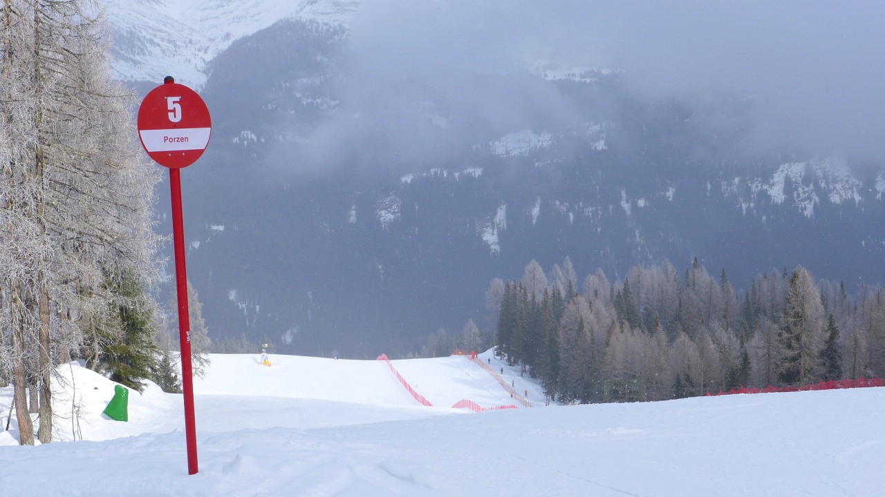 Mi ritrovo a passare un paio di ore calamitato sulla "pistarella tra le reti" servita dallo skilift Porzen. Di solito quel tratto è adibito ad allenamenti ma oggi era libero. Il fatto che sia racchiuso tra le reti fa sciare tutti in conduzione con il risultato che in quell'area la neve è semplicemente perfetta: compatta ma non ghiacciata con 2 cm di smosso sopra.