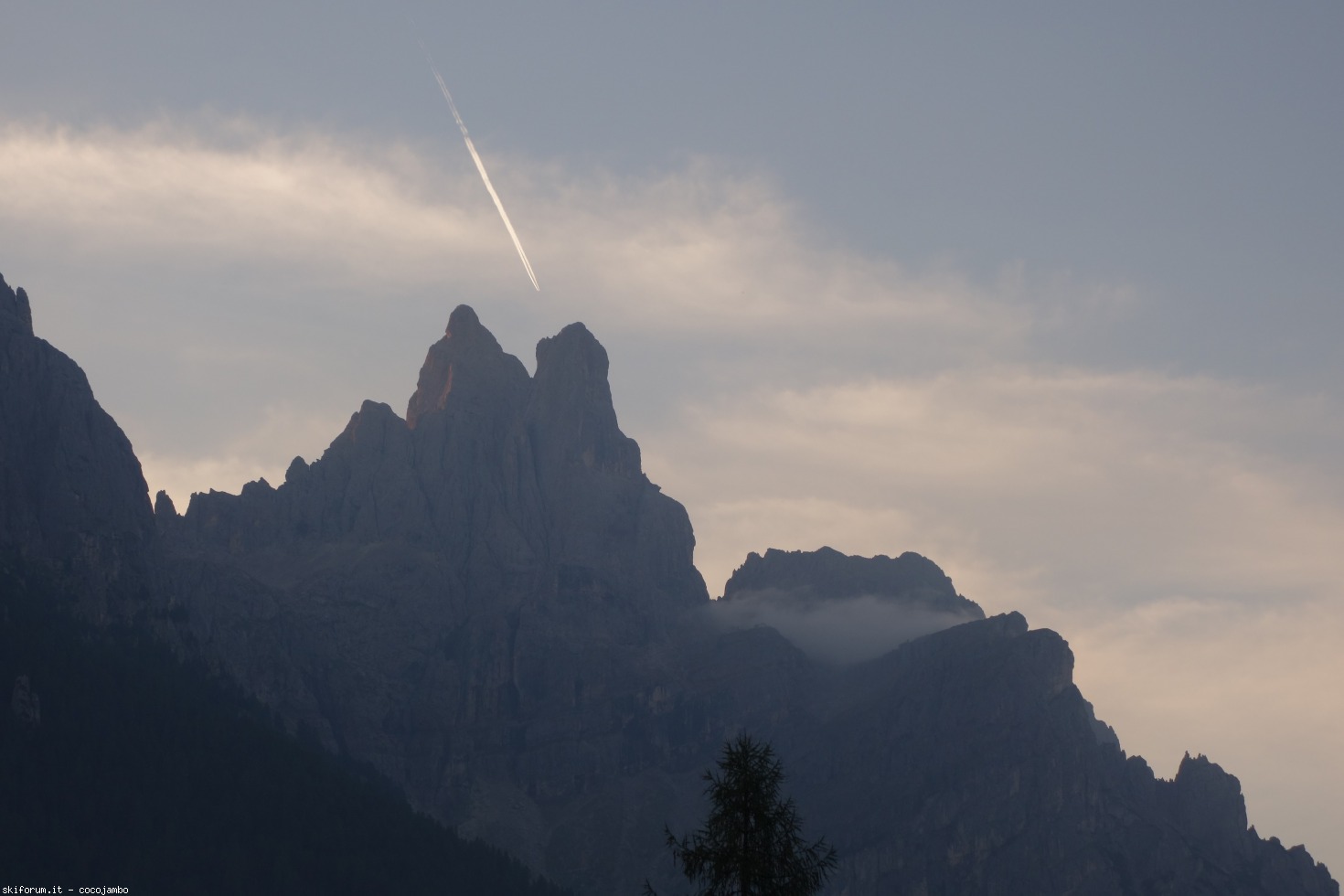 Weekend settembrino nella parte sud del Gruppo delle Pale di San MartinoQui il primo giorno, da poco sopra Malga Civertaghe siamo saliti verso il Sass Maor per poi percorrere la semplice e corta ferrata della Vecia, arrivare ai piedi del Porton, proseguire sul bello e simpatico sentiero attrezzato Nico Gusella, aggirando Cima di Ball e raggiungere alla fine il Rifugio Pradidali..il secondo giorno lo metto per comodità in altro 3dHo usato la mappa tabacco 22Il percorso corre tra gole e torri spettacolari..peccato ci siano stati i soliti nuvoloni che salivano dalle valliLa sveglia a San Martino di Castrozza con il Sass Maor e Cima della Madonna a darci il buongiornonella nuvoletta a destra si intravvede il Rif. Velo della Madonna
