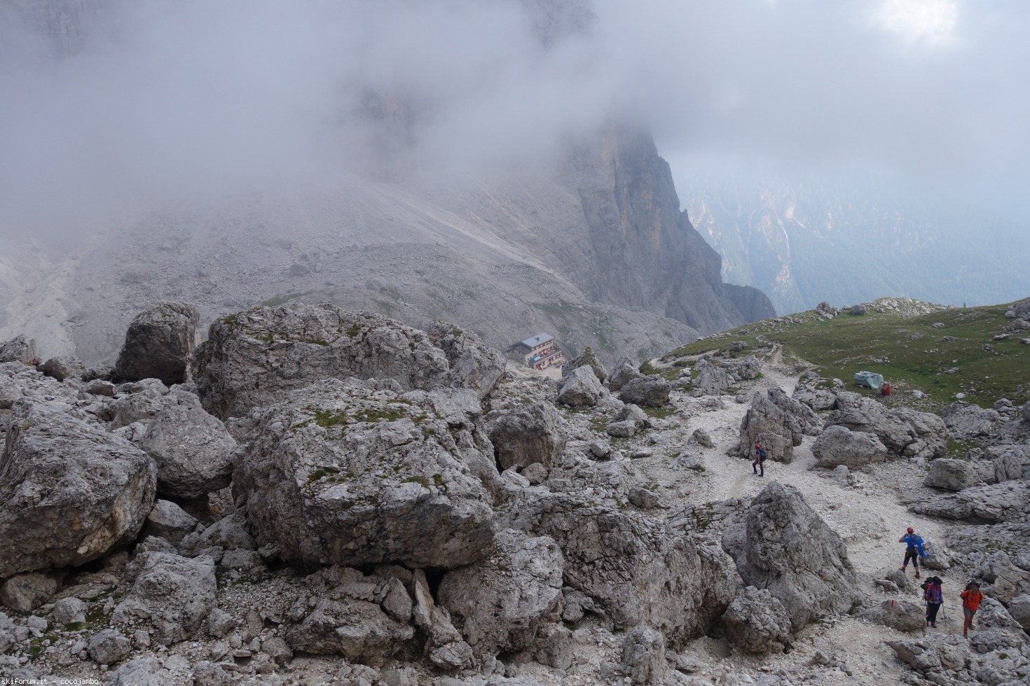 e si vede pure la nostra meta odierna, il rifugio Pradidali