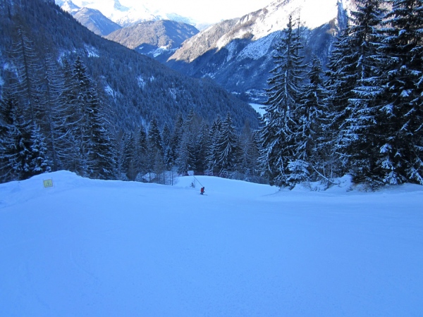 [i]Foto del primo impegnativo muro e del curvone vesro sinistra della pista Rientro di Alleghe, Ski Civetta.[/i]