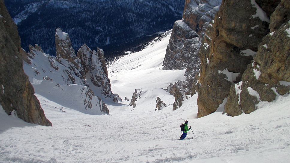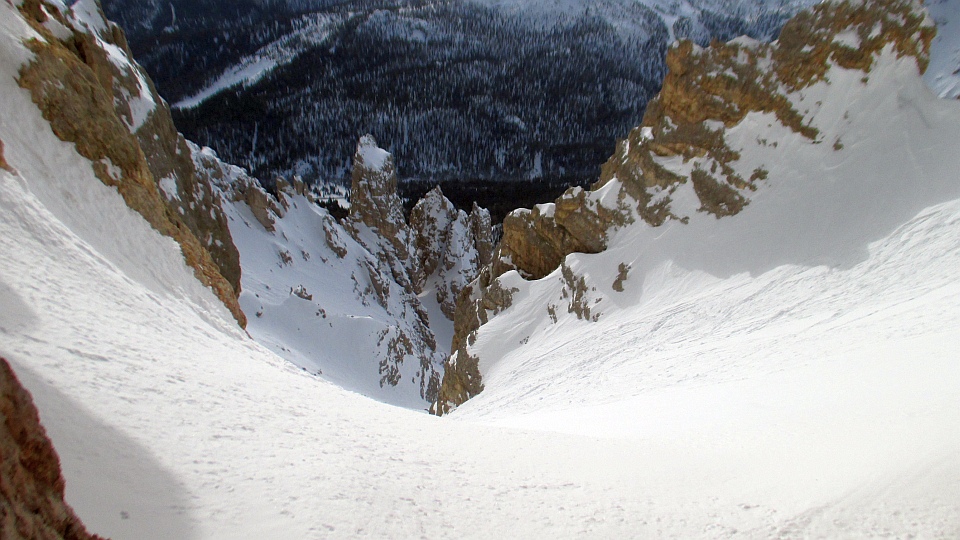 Attenzione, non viene sempre sottolineato ma con certe condizioni di neve l'imbocco (sia alto per la sciata che il basso per i passaggi esposti) non è affatto facile, meglio salire con persone esperte o con una guida e nel caso non ce la si senta "girare i tacchi" e tornare un'altra volta.