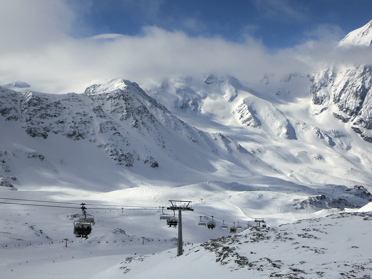 Il lunedì di Pasquetta lo trascorro nell'altra località famosa della zona, Solda/Sulden am Ortler raggiungibile tramite una deviazione dalla ss38 dello Stelvio. La skiarea consta di tre versanti collegati dei quali uno, il più famoso porta lo sciatore fino a 3250 metri in un circo innevato ai piedi del gruppo montuoso dell'Ortles dove il panorama da solo vale sicuramente il viaggio.