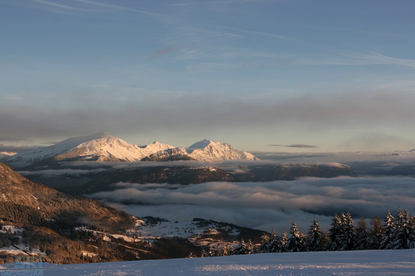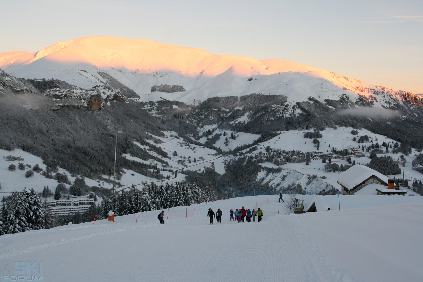 Ci si trova alla partenza impianti che è ancora buio, si sale e sperando di non congelare si attende in vetta il sorgere del sole. Aspettiamo che liberino la seggiovia dalla neve caduta fino a poche ore prima