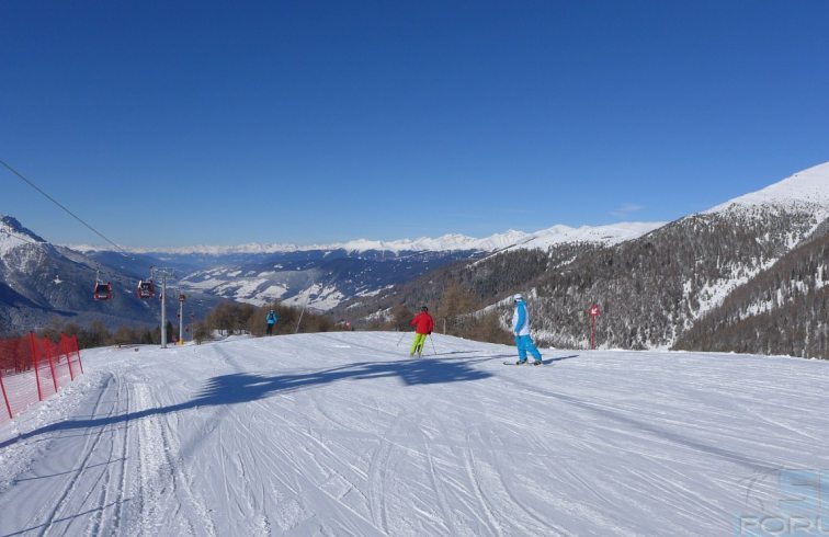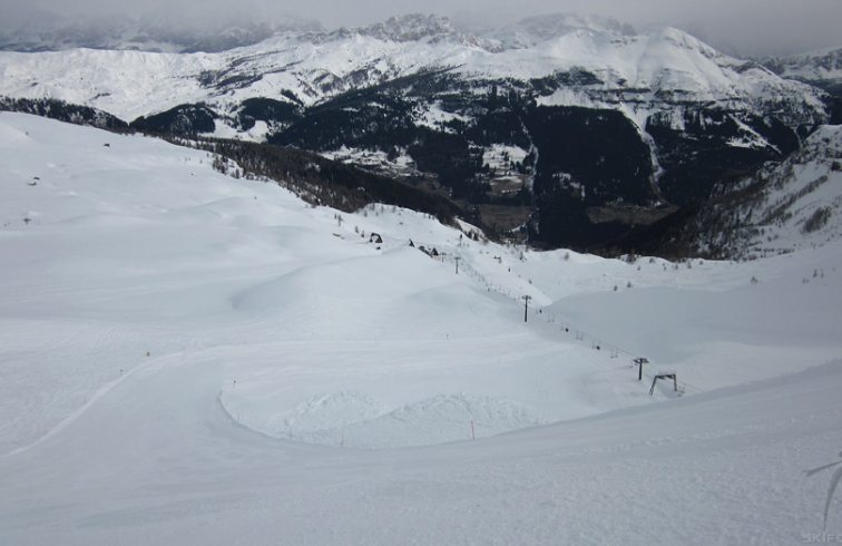 La pista dopo esser passata nei pressi di un rifugio si collega con la pista che scende da "Le Cune" e torna in località "Campo" da cui partono gli impianti di risalita.