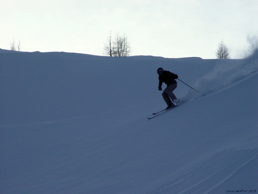 Vabbè, proviamo e ci buttiamo giù per la pista fantasma sotto la seggiovia di Pian della Sussistenza. Figata. Non è polvere ma divert-assaie (Yeah)