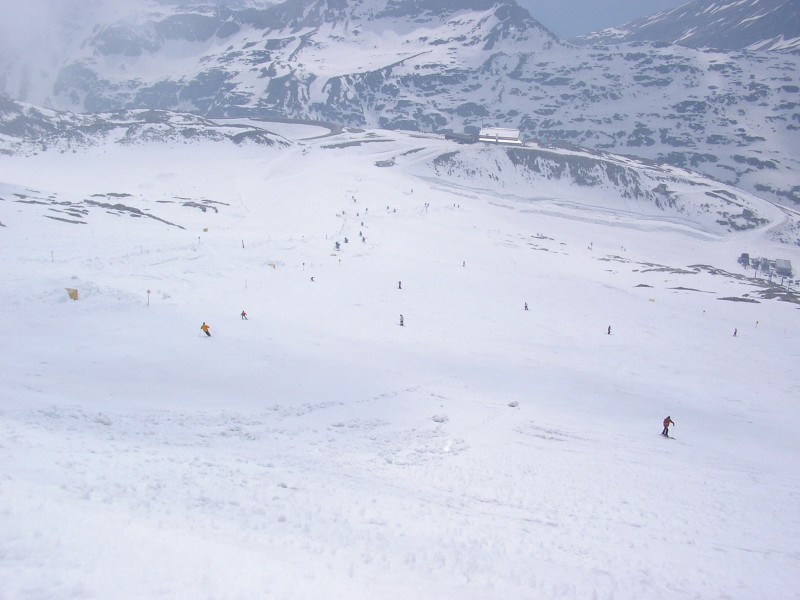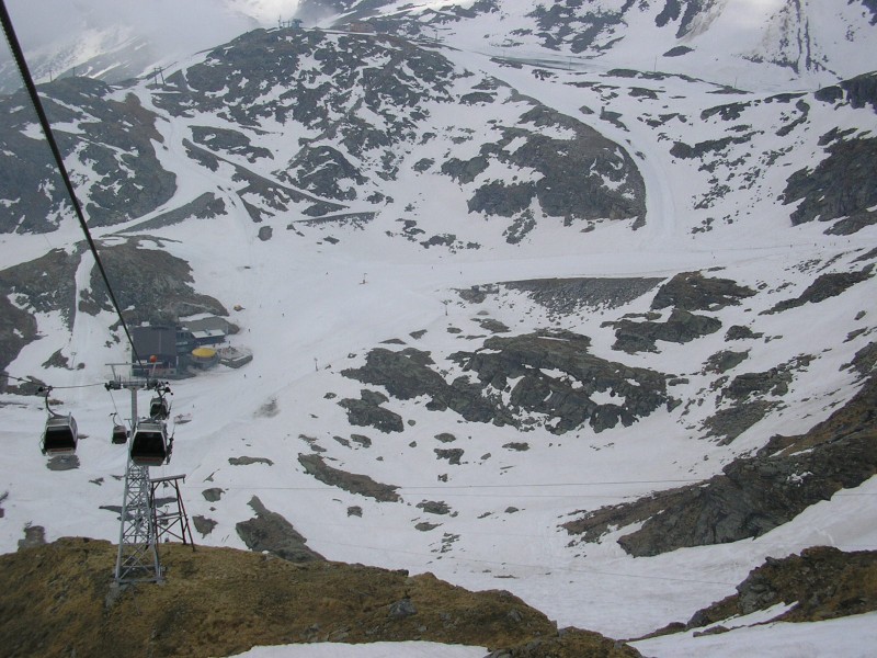 Discesa di qualche metro per prendere i due impianti paralleli (seggiovia a sei e due posti ) che conducono in vetta al Schareck a 3122m. Questi due impianti servono le piste del ghiacciaio e vengono utilizzati anche per lo sci estivo.