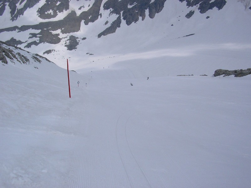 Secondo tratto del ghiacciaio (piste 5-6-7) ormai rimasto isolato dal ghiacciaio alto a causa dello scioglimento. In origine la pista estiva arrivava poco sopra la partenza dell'impianto E, dove partiva uno skilift da ghiacciaio ormai demolito.