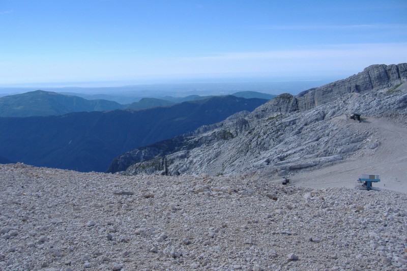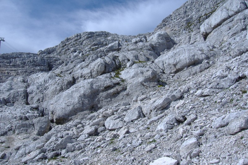 Ora la salita si fà ancor più ripida e impegnativa... si devono scvalcare grossi massi di roccia calcarea per raggiungere la Sella Forato dove ci sono gli impianti sciistici di Bovec (Plezzo).