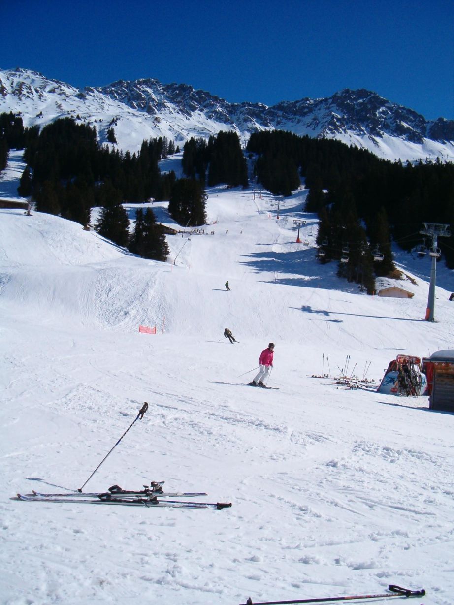 L'idea era di passare la domenica a Flims/Laax e sciare con la mia famiglia, ma mio padre e mio fratello, dopo averci sciato sabato, hanno voluto fortemente cambiare posto perchè non erano stati per nulla soddisfatti: secondo loro, Flims/Laax presentava neve pappa (sabato torrido, anche a St.Anton), un sacco di gente e di file, e un sacco di pezzi da racchettare per muoversi da una pista all'altra.