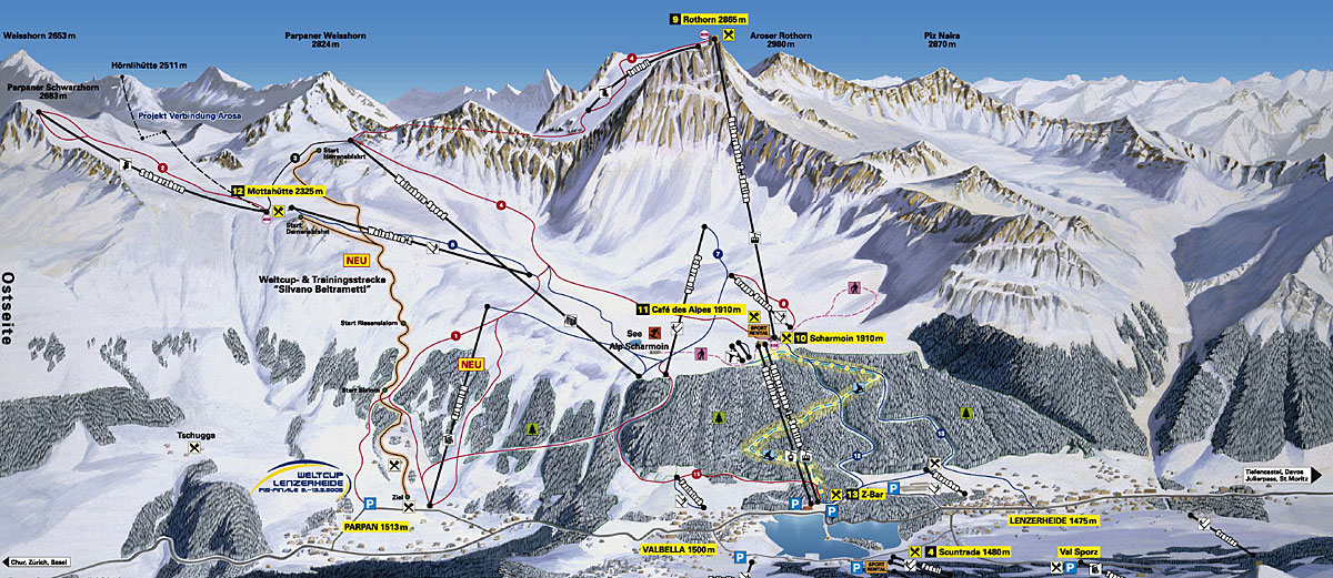 una mappa di insieme (l'impianto previsto da Parpan è già stato realizzato in sostituzione dello skilift):