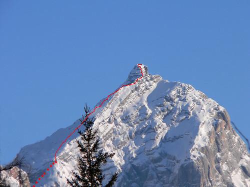 - si risalgono le famose laste per circa 40 min. fino a dove queste si riducono ad un'esile cresta che in breve conduce in cima alla calotta sommitale.
