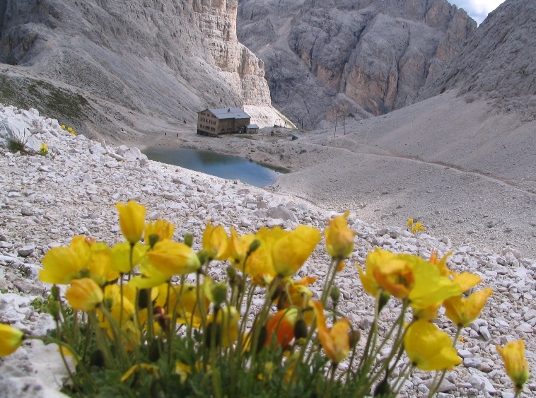 A questo punto le rocce scompaiono gradualmente e si ritrova un piccolo sentiero che con qualche ripido tornante conduce finalmente al Rifugio Re Alberto I (2621m).