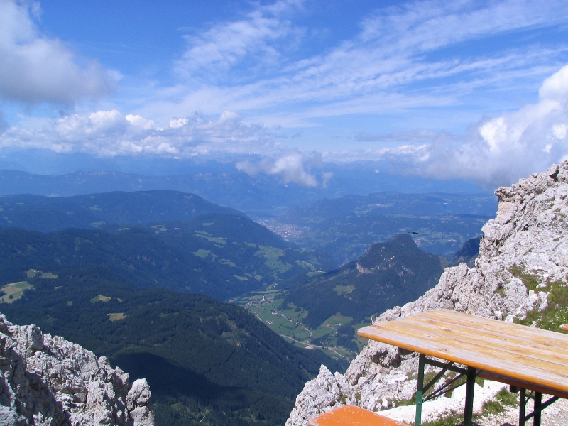 Panorama dal Passo Santner: la Valle di Tires e in fondo la città di Bolzano