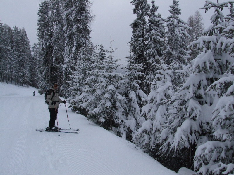 Il primo giorno abbiamo vagato ( questa è la parola giusta dato che come aprivo bocca facevo perdere la ciurma nei meandri del Panettone!). Piste davvero fantastiche: molto bella la zona della Valdaora ma anche quella che porta a San Vigilio: piste davvero eccellenti e lunghe. A metà mattinata la decisione: vada per la Sylvester! All'inizio comincia quasi fosse un sentiero, tanto è vero che esclamo: “ammazzate! Se questa è nera la mi' nonna c'ha le rote!!”.