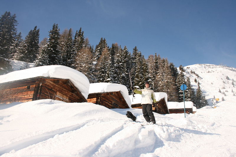 Partenza da Siena il 24 gennaio. Viaggio duro: al di là dell'appennino nevica. Il tempo migliora in trentino ed allora decidiamo di passare dal Resia anziché dalla Brennero. Mai decisione è stata così felice. Il paesaggio, già imboccata la val venosta dopo Merano, è eccezionale. La neve dei giorni precedenti rende tutto splendido. La parte finale da Malles fino al Passo Resia, passando per Glorenza,S.Valentino e il fantastico lago Resia, è tra i più bei scorci alpini che ricordi. Lungo il tragitto ci salutano vette leggendarie: il Similaun in fondo alla Val Senales,il Cevedale in fondo alla Val Martello, il Gran Zebrù e l'Ortles in fondo alla Val di Solda. Si distinguono persino i lineamenti del Monte Cristallo sul ghiacciaio dello Stelvio. Siamo nel mezzo ai luoghi della leggenda alpina italiana ed è un emozione ogni volta che ci passiamo!! Verrà un giorno in cui deciderò di farmi tutti i piccoli comprensori di questa fantastica zona.