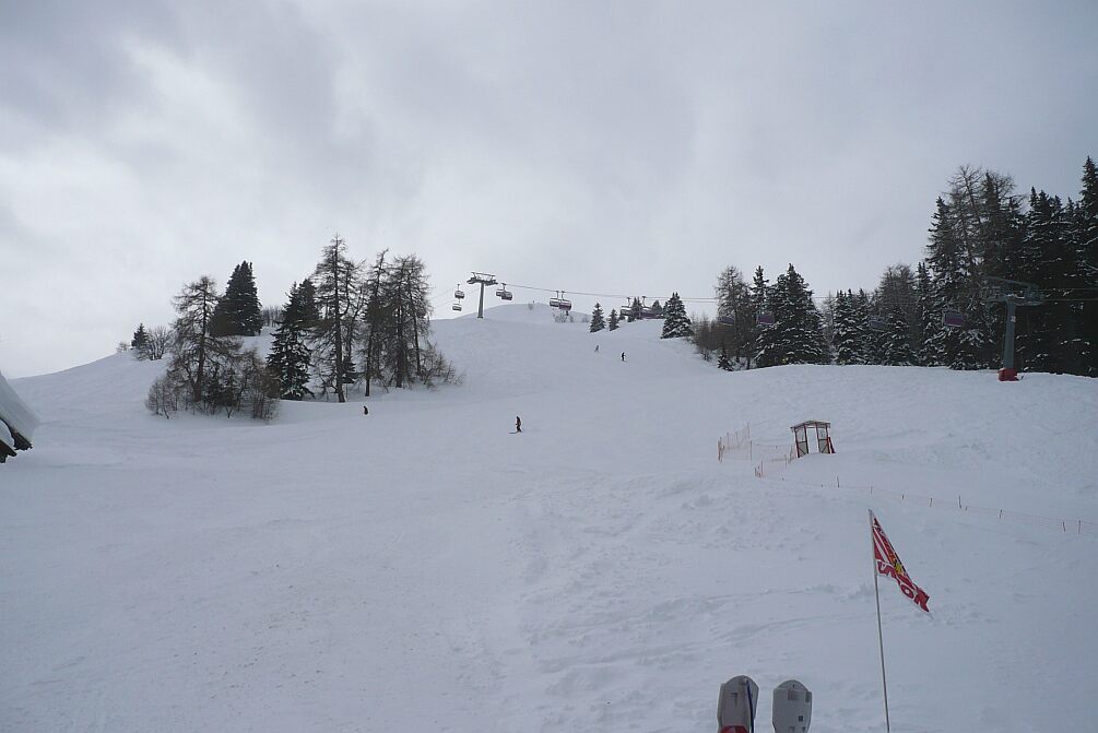 Sabato il tempo è leggermente migliore quindi ci dirigiamo a Colle Isarco precisamente a Ladurns. Che dire, un piccolo gioiello, due seggiovie che servono bellissime piste molto larghe e lunghe dove si può carvare divinamente visto anche la poca gente presente.