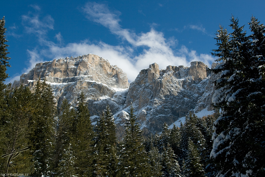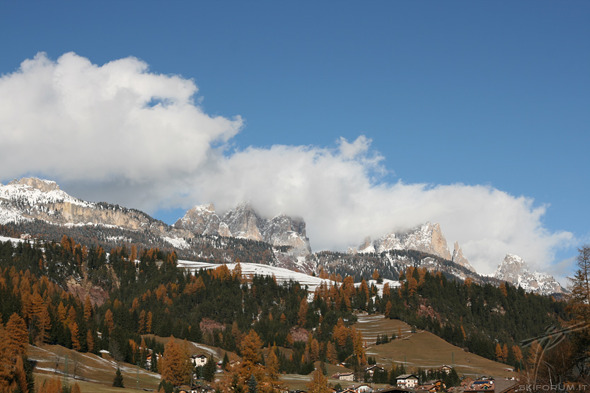 Fantastico il Sassolungo con la prima neve autunnale. Sassolugno e prima neve