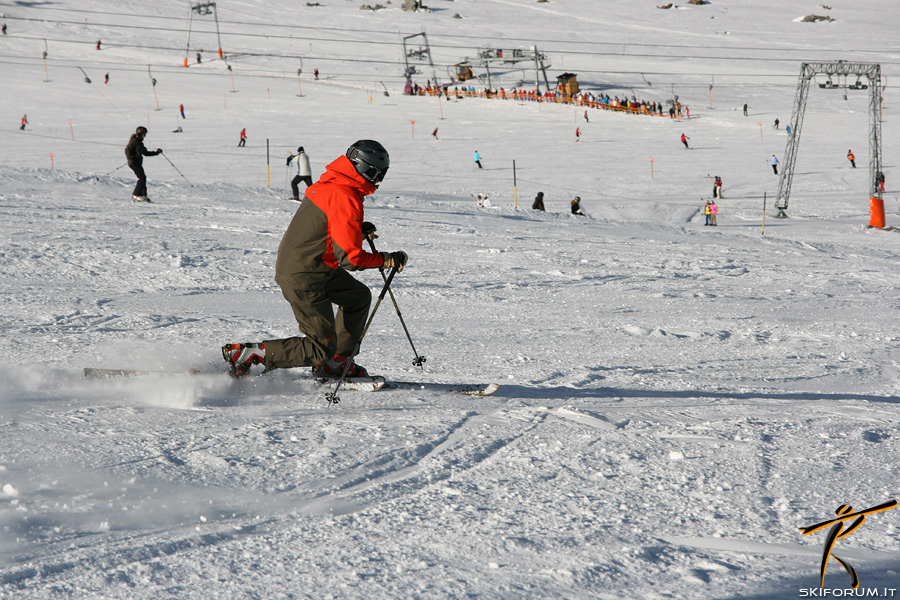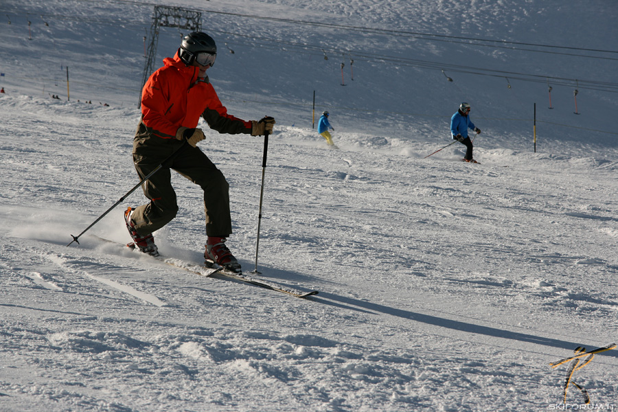 In pista ed in qualche fazzoletto fuoripista ho visto qualche fenomeno, nel senso "bravo" del termine. In crostona e sul ripido li vedi scendere danzando: spettacolo! Peccato per gli abbinamenti cromatici: nel telemark c'è molto da lavorare sullo "stail": ho visto troppi gusci e completi formali e troppe poche tinte accese! Chuy, necessitano di uno scambio culturale.