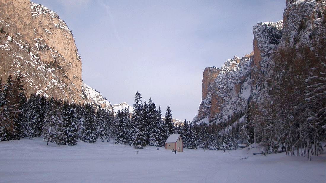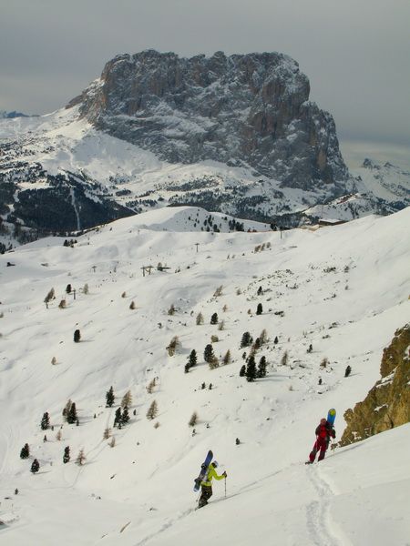 ) sono saliti al passo Gardena con la macchina. Ci siamo ritrovati al rifugio Baita Clark alla base del canale di salita per proseguire assieme