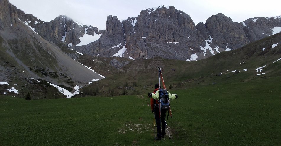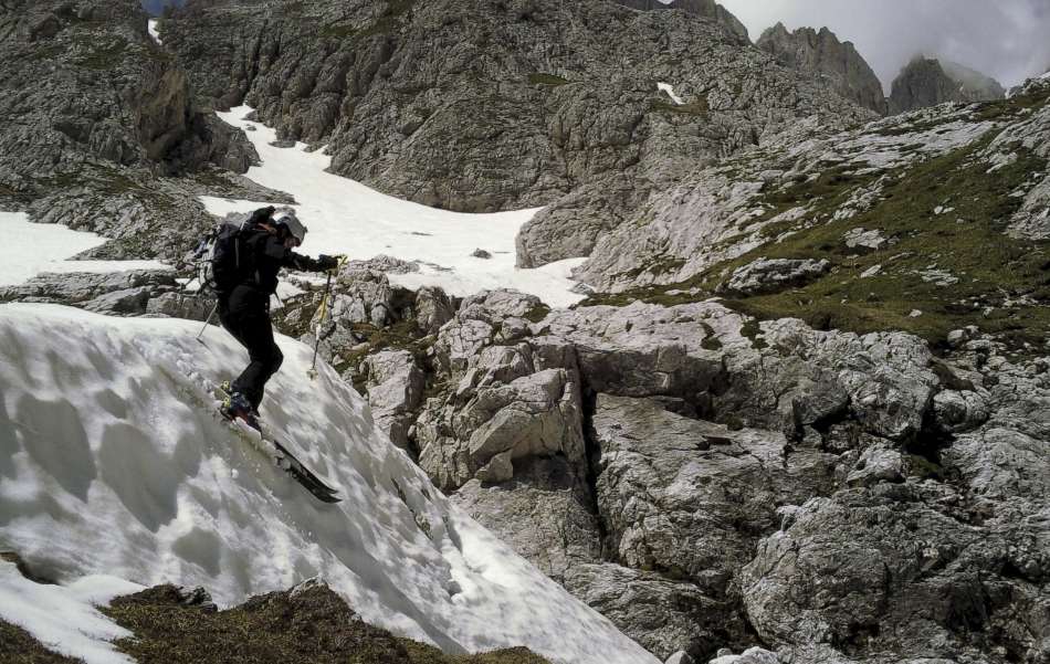 La inserisco comunque perché mi piacerebbe sapere il vostro parere sulla sua sciabilità. Per me non ha molto senso. Sulla cengia del Menego è impossibile sciare e nella parte alta il pendio è appena 100 m di dislivello. Boh! Mi sembra molto più sensato fare la forcella omonima o quella del Laghet.