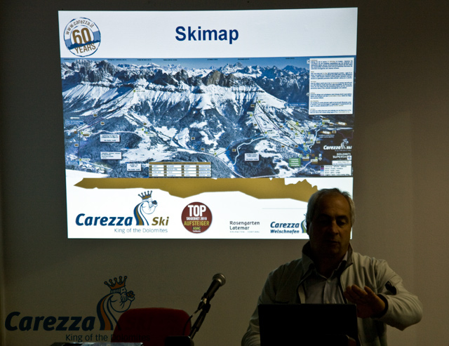 Prima ha parlato il Signor Technoalpin ed ha presentato la località di Passo Costalunga - Carezza, poi ha preso la parola Mariano e con sfondo le più belle scene del film ha presentato il video.