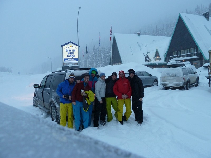 Il Roger Pass è un punto di partenza per bellissime sci alpinistiche . Avevamo in programma di pellare, ma il tempo è pessimo ed abbiamo tutti voglia di far discesa