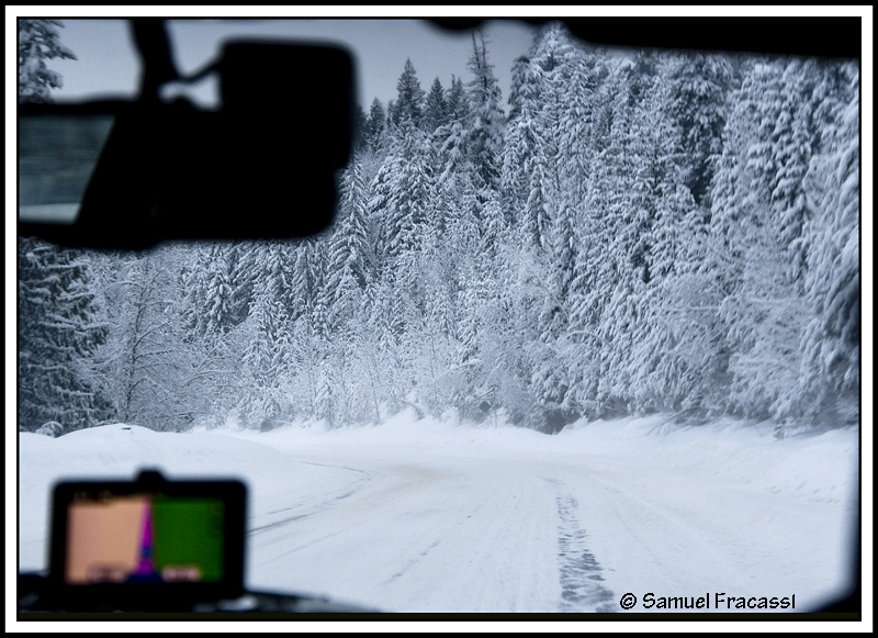 Il 3 febbraio sera ci raggiungono Marco, Samuel e Simone ed il mattino successivo partiamo per Revelstoke. La strada tra Golden e Revelstoke passa per il Roger Pass ed è molto suggestiva. Nevica, la strada è quasi una pista da sci ed ai lati ci circondano pareti cariche di neve .
