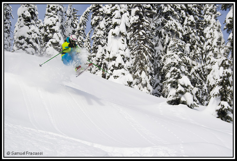Non nevica da qualche giorno e pertanto le cavallette canadesi hanno già arato ogni pendio possibile. La località è comunque molto valida : pochi impianti assistono un dominio enorme con piste lunghissime e fuoripista di ogni tipo . Subito mi colpisce quello che già avevo notato in Colorado : in nordamerica non esiste una differenza sostanziale tra sciatori da pista e da fuoripista. Qui tutti scendono ovunque : canali, boschi larghi e stretti, valloni, piste a gobbe e piste tirate a biliardo . Ragazzini, anziani ed anche tante donne scendono ovunque e vivono il resort a 360° . Nessuno usa sci “tradizionali” da pista ma solo sci fat, mid fat o massimo allmountain . Lo sci in assoluto più diffuso è il Rossignol S7 . Il mercato dello sci è completamente diverso dal nostro.