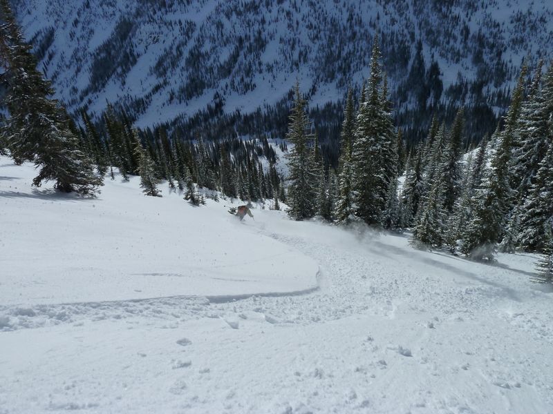 Sean ci accompagna per le bowls appena aperte e ci fa sconfinare nel territorio riservato al catskiing .