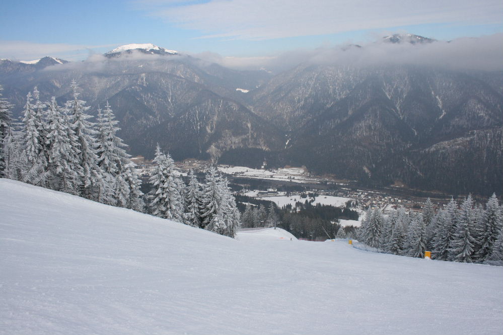 Bellissima la pista che scende a Wagrain: a destra si vede anche la pista che scende dalla zona di Flachau verso Wagrain; in lontananza invece s'intravede la pista del piccolo comprensorio di Eben in Pongau.