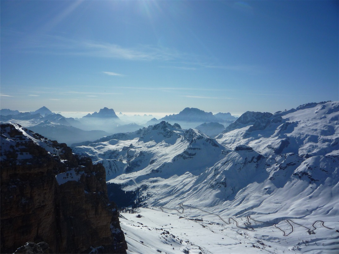Presa la funivia del Sass Pordoi ci si dirige verso l'imbocco della forcella Pordoi e della Val Lasties e si punta alla base del Piz Boè (3152mt) da dove si indossano i ramponi e si inizia a salire.