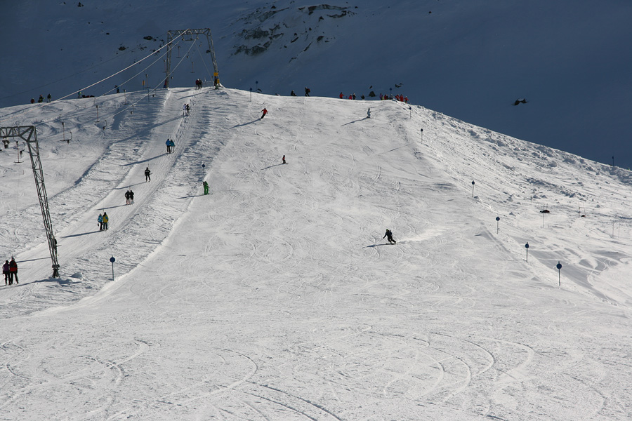 La giornata è passata mazzingando per le piste ed in coda agli impianti. L'ancora Norderjoch 1 e le ancora Weisseferner avevano un bel po' di coda, purtroppo. La seggiovia, la cabinoiva e l'ancora Norderjoch molto meno. Anche l'impianto Falgin aveva poca coda ma è piuttosto defilato e in ombra.