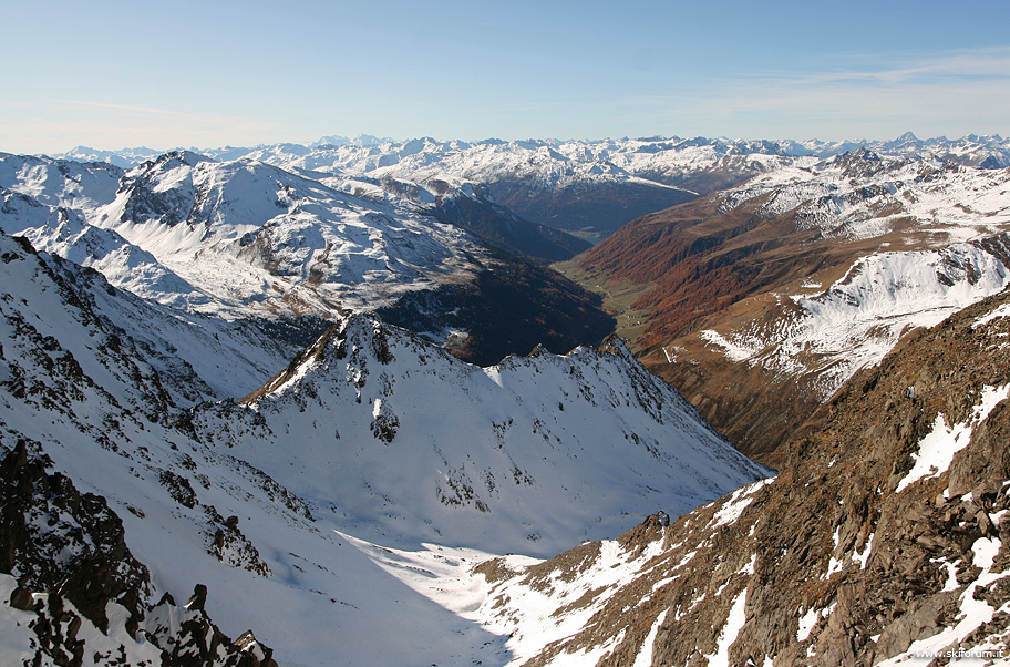 Panorama sulla Val Venosta (si vede il lago) dal Karlesjoch raggiungibile con gli impianti di Kaunertal, Tirolo.