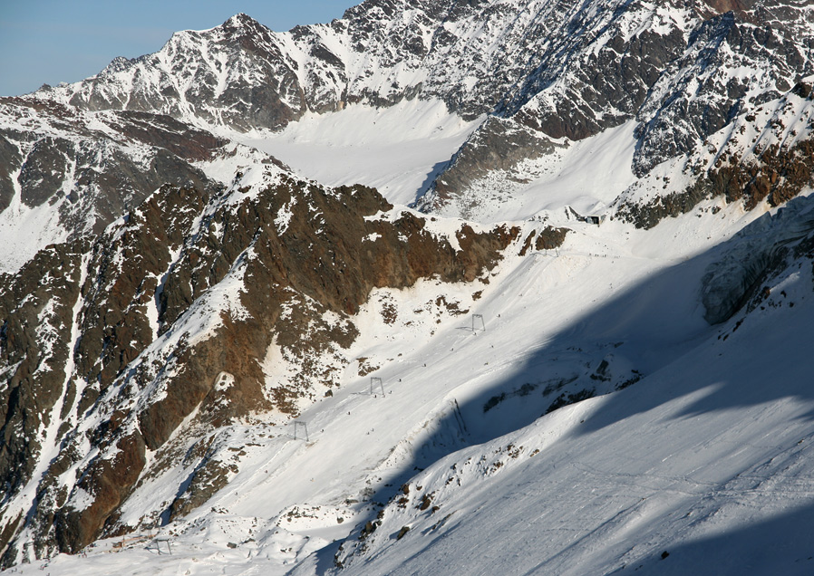 La due ancore Weisseeferner servono una pista molto bella la cui parte alta era tappezzata di porte e pali per gli sci club.