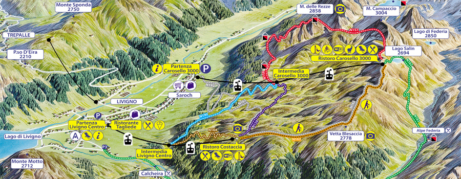 Mi riferisco al percorso segnato in rosso, a partire dal ristoro in alto raggiunto con la funivia, raggiungendo il monte delle Rezze per poi ridiscendere verso l'intermedia continuando su parte del sentiero celeste e poi grigio in modo da ritrovarsi al parcheggio di Plaza Placheda o ancora meglio all'alegria:semagna: