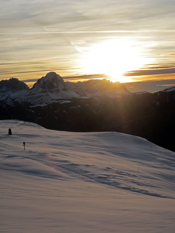 Le ultime piste sono fatte con il sole che è già oltre il Sas da Putia.