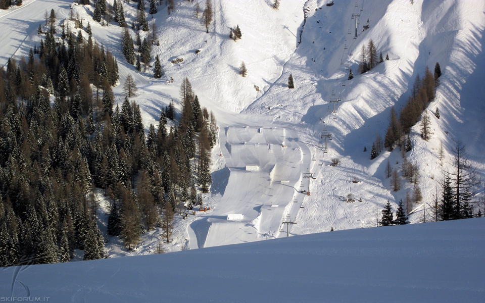Finalmente vedo "in funzione" (o almeno lo vedo preparato) lo snowpark di Arabba, quello sotto la seggiovia Le Pale.