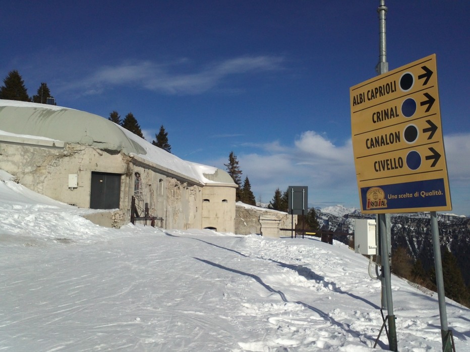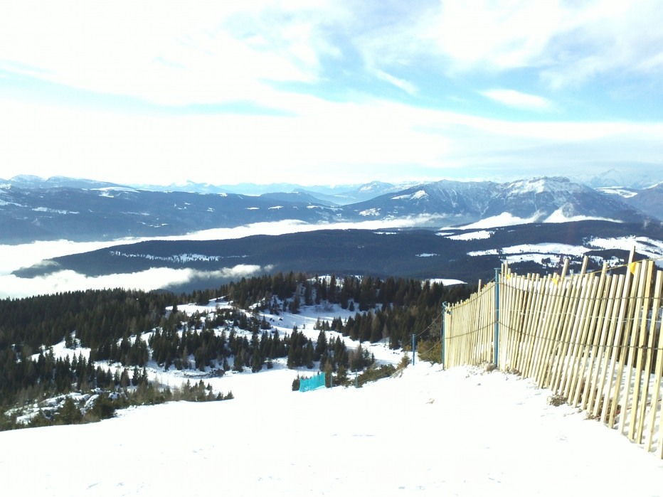 Ottima la visibilità a 360 gradi. qui sullo sfondo le dolomiti del brenta , paganella , bondone. sotto la val d'Assa,il passo vezzena e la pista del vezzena.