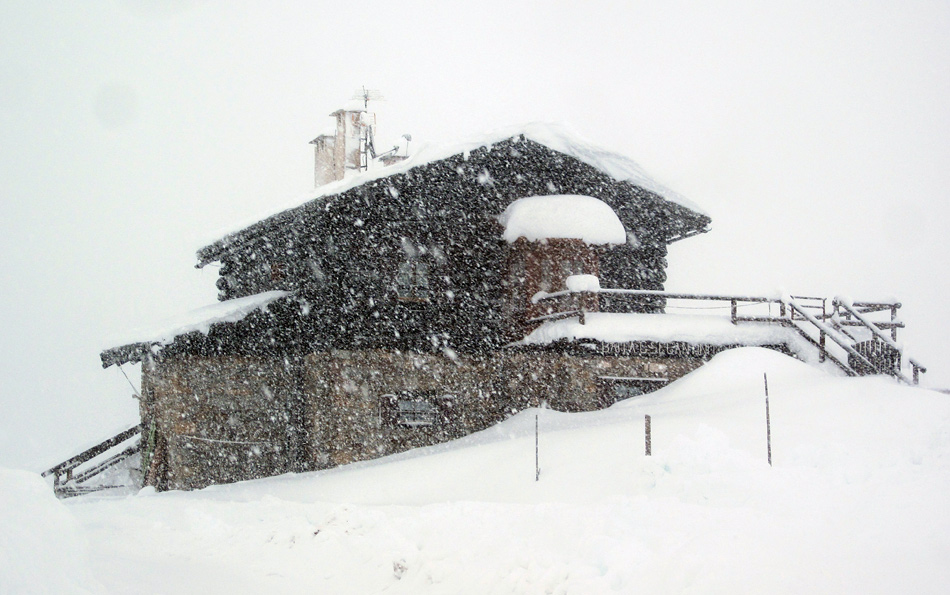 C'era una remota possibilità che il cielo si aprisse prima di sera ed allora come non approffittarne? Con il Nik siamo saliti a Passo Rolle e sotto una bufera di neve siamo salita fino a Baita Segantini a caccia del tramonto e dell'apertura del cielo. L'apertura non c'è stata, nebbia e bufera sempre... peccato.